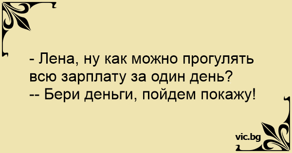 - Лена, ну как можно прогулять всю зарплату за один день?