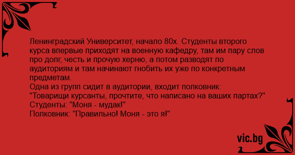 "Товарищи курсанты, прочтите, что написано на ваших партах?"