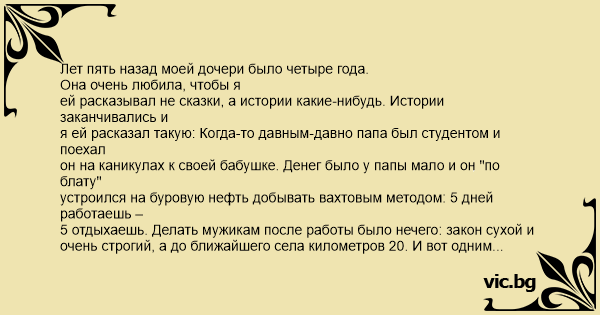 я ей расказал такую: Когда-то давным-давно папа был студентом и поехал