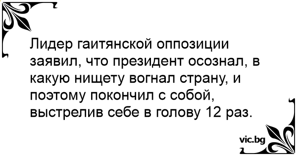Лидер гаитянской оппозиции заявил, что президент осознал, в какую нищету вогнал страну, и поэтому покончил с собой, выстрелив себе в голову 12 раз.