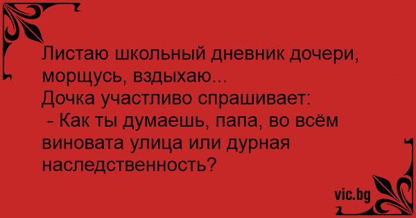 - Как ты думаешь, папа, во всём виновата улица или дурная наследственность?