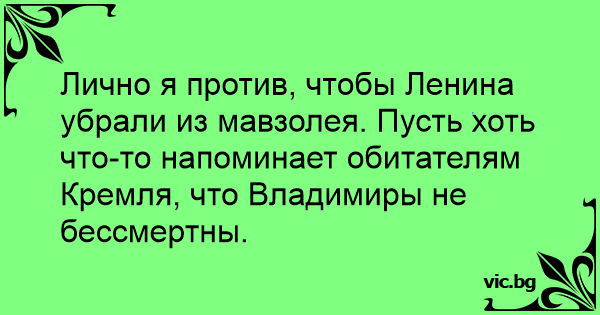 Лично я против, чтобы Ленина убрали из мавзолея. Пусть хоть что-то напоминает обитателям Кремля, что Владимиры не бессмертны.