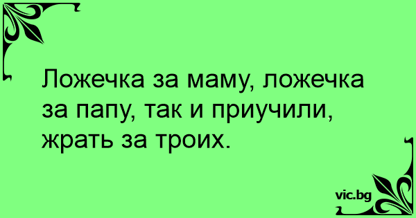 Ложечка за маму, ложечка за папу, так и приучили, жрать за троих.