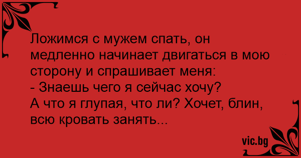 Ложимся с мужем спать, он медленно начинает двигаться в мою сторону и спрашивает меня: