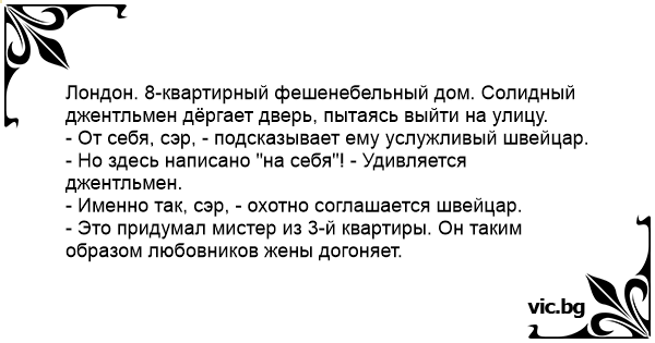 - От себя, сэр, - подсказывает ему услужливый швейцар.