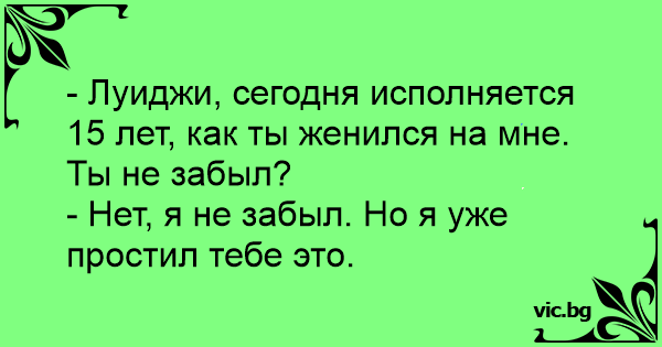 - Луиджи, сегодня исполняется 15 лет, как ты женился на мне. Ты не забыл?