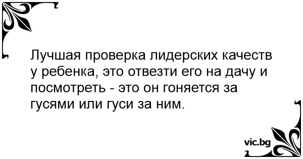 Лучшая проверка лидерских качеств у ребенка, это отвезти его на дачу и посмотреть - это он гоняется за гусями или гуси за ним.