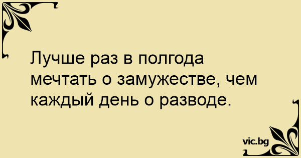 Лучше раз в полгода мечтать о замужестве, чем каждый день о разводе.
