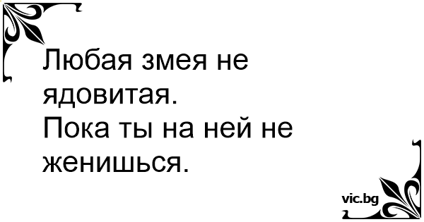 Любая змея не ядовитая.<br />Пока ты на ней не женишься.