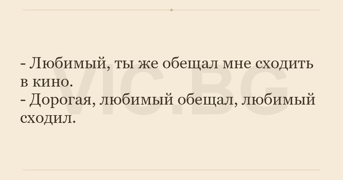 - Дорогая, любимый обещал, любимый сходил.