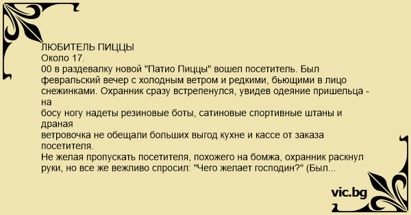 00 в раздевалку новой "Патио Пиццы" вошел посетитель. Был