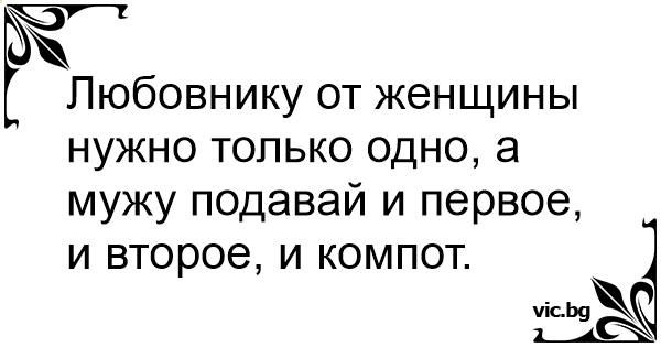 Любовнику от женщины нужно только одно, а мужу подавай и первое, и второе, и компот.