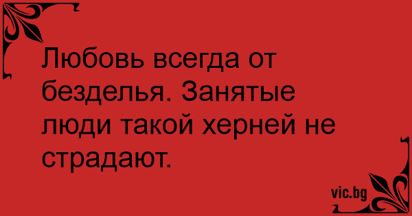 Любовь всегда от безделья. Занятые люди такой херней не страдают.