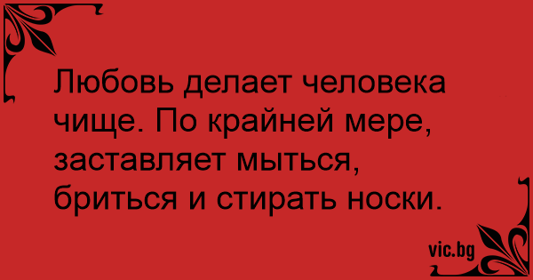 Любовь делает человека чище. По крайней мере, заставляет мыться, бриться и стирать носки.