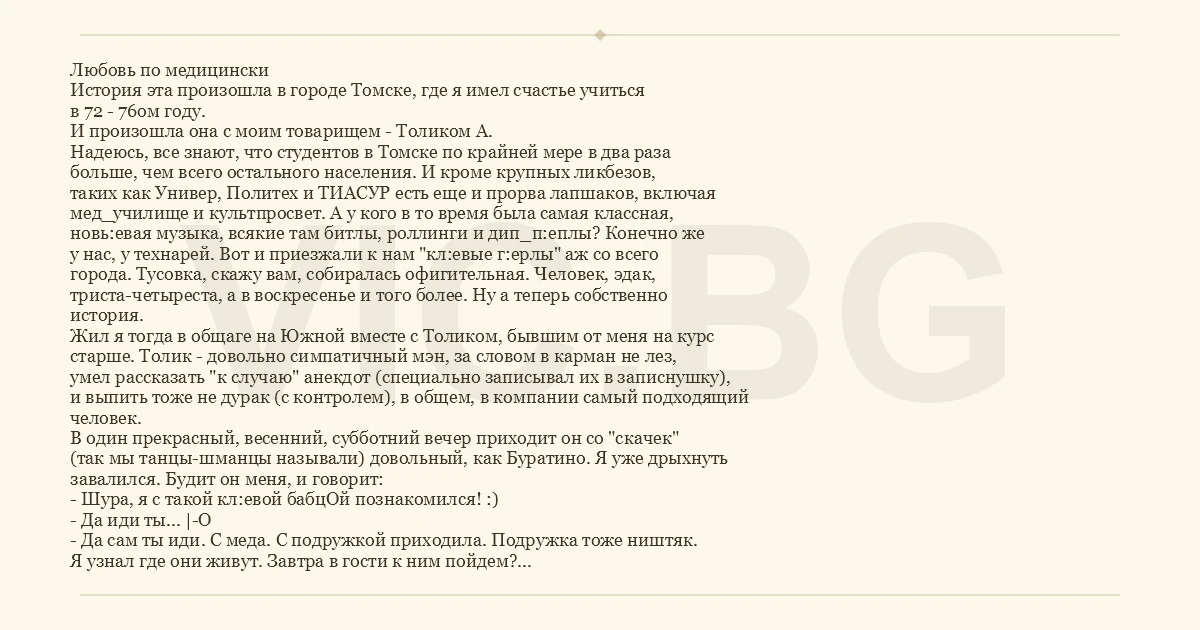 И рассказывает мне такую историю. У них там в меде один чувак ошивался.