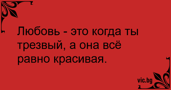 Любовь - это когда ты трезвый, а она всё равно красивая.