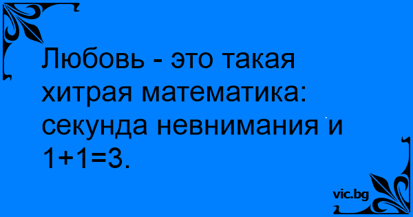 Любовь - это такая хитрая математика: секунда невнимания и 1+1=3.