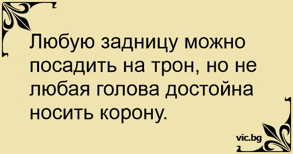 Любую задницу можно посадить на трон, но не любая голова достойна носить корону.