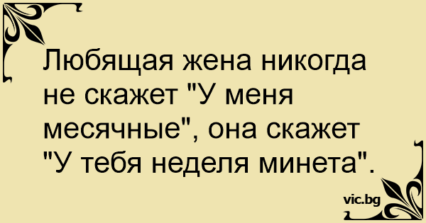 Любящая жена никогда не скажет "У меня месячные", она скажет "У тебя неделя минета".
