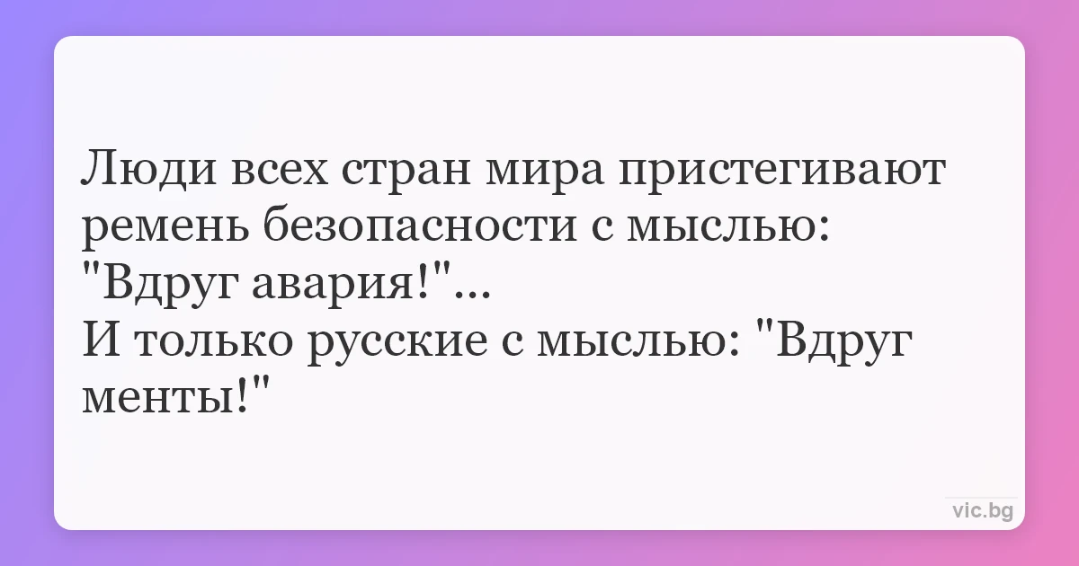 Люди всех стран мира пристегивают ремень безопасности с мыслью: "Вдруг авария!"...