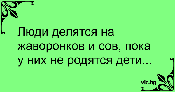 Люди делятся на жаворонков и сов, пока у них не родятся дети...
