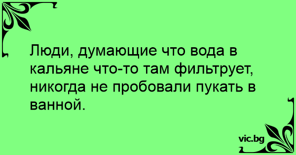 Люди, думающие что вода в кальяне что-то там фильтрует, никогда не пробовали пукать в ванной.