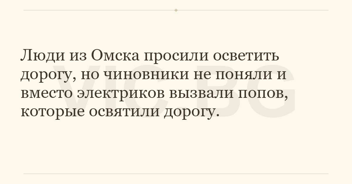 Люди из Омска просили осветить дорогу, но чиновники не поняли и вместо электриков вызвали попов, которые освятили дорогу.