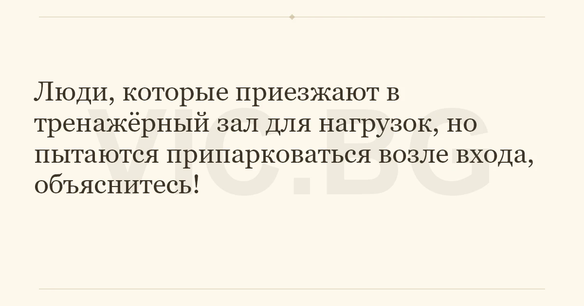 Люди, которые приезжают в тренажёрный зал для нагрузок, но пытаются припарковаться возле входа, объяснитесь!