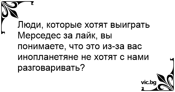 Люди, которые хотят выиграть Мерседес за лайк, вы понимаете, что это из-за вас инопланетяне не хотят с нами разговаривать?