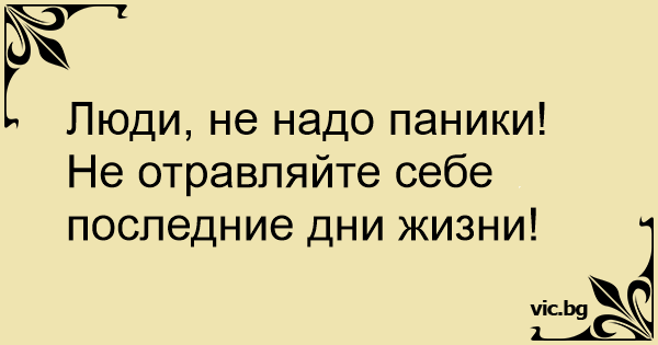 Люди, не надо паники! Не отравляйте себе последние дни жизни!