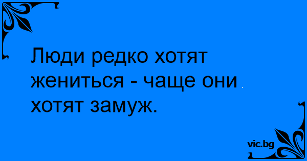 Люди редко хотят жениться - чаще они хотят замуж.