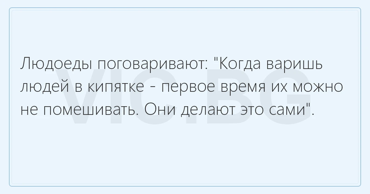 Людоеды поговаривают: "Когда варишь людей в кипятке - первое время их можно не помешивать. Они делают это сами".