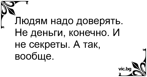 Людям надо доверять. Не деньги, конечно. И не секреты. А так, вообще.