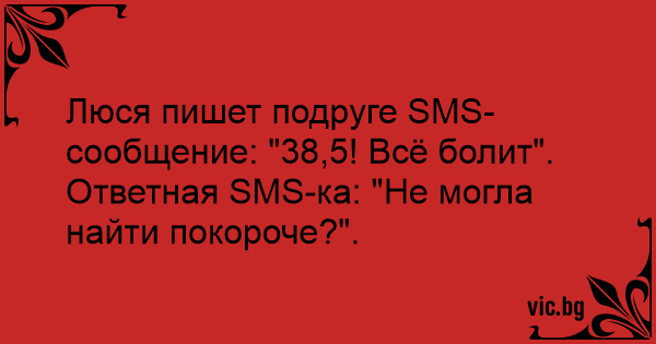 Люся пишет подруге SMS-сообщение: "38,5! Всё болит".