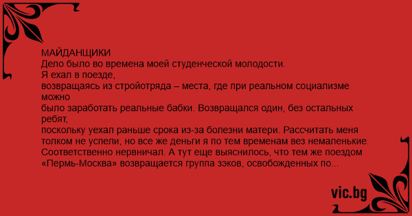 МАЙДАНЩИКИ Дело было во времена моей студенческой молодости.