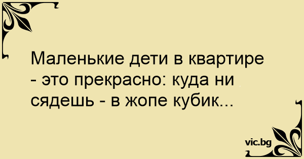 Маленькие дети в квартире - это прекрасно: куда ни сядешь - в жопе кубик...