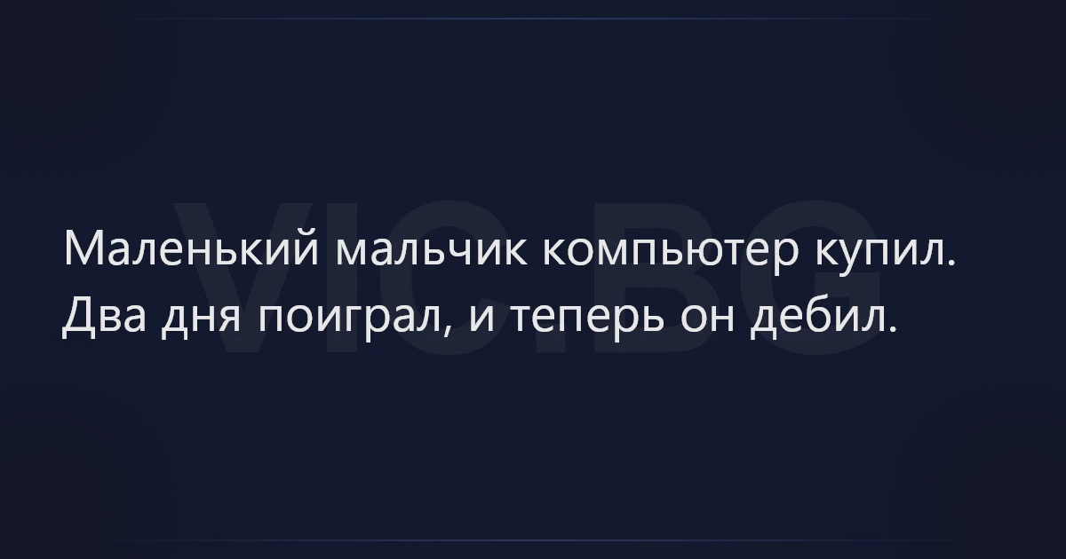 Маленький мальчик компьютер купил.<br />Два дня поиграл, и теперь он дeбил.