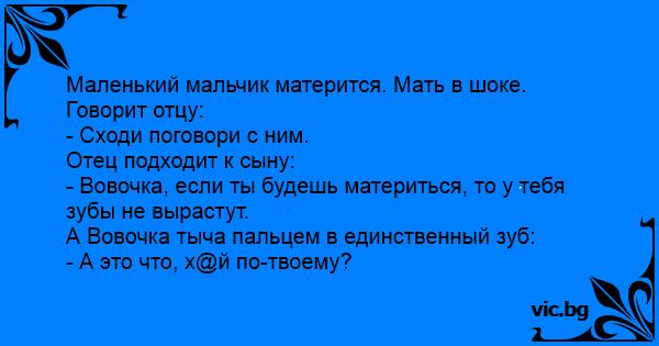 - Вовочка, если ты будешь материться, то у тебя зубы не вырастут.