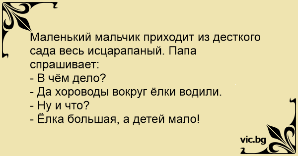 Маленький мальчик приходит из десткого сада весь исцарапаный. Папа спрашивает:
