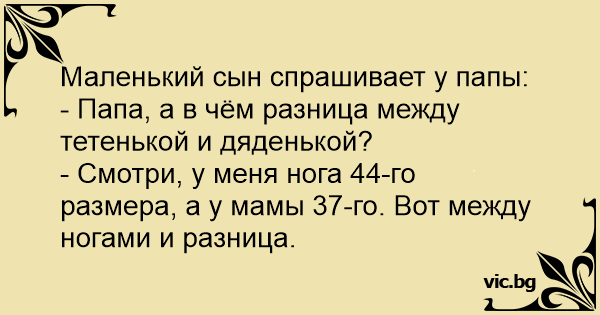 - Папа, а в чём разница между тетенькой и дяденькой?