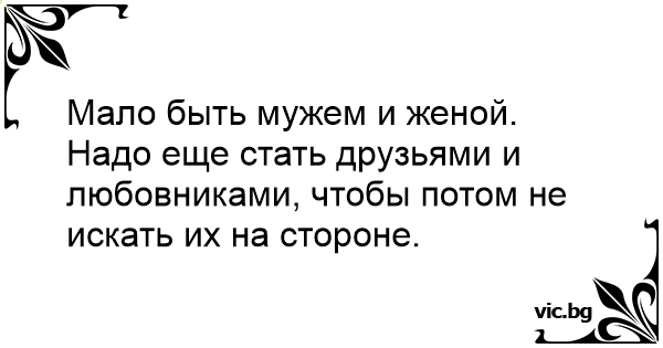 Мало быть мужем и женой. Надо еще стать друзьями и любовниками, чтобы потом не искать их на стороне.