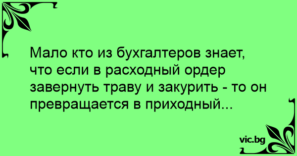 Мало кто из бухгалтеров знает, что если в расходный ордер завернуть траву и закурить - то он превращается в приходный...