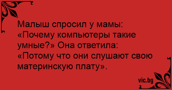 Малыш спросил у мамы: «Почему компьютеры такие умные?» Она ответила: