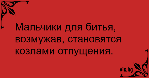 Мальчики для битья, возмужав, становятся козлами отпущения.<br />