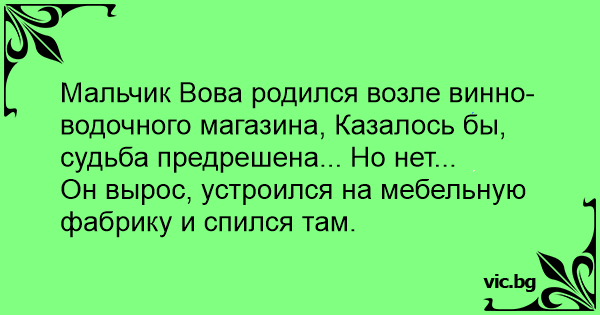 Мальчик Вова родился возле винно-водочного магазина, Казалось бы, судьба предрешена... Но нет...