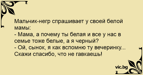 - Мама, а почему ты белая и все у нас в семье тоже белые, а я черный?