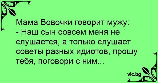 Мама Вовочки говорит мужу:<br />- Наш сын совсем меня не слушается, а только слушает советы разных идиотов, прошу тебя, поговори с ним...