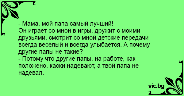 Он играет со мной в игры, дружит с моими друзьями, смотрит со мной детские передачи всегда веселый и всегда улыбается. А почему другие папы не такие?