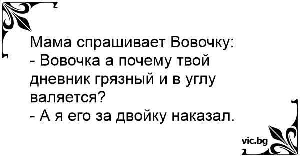 - Вовочка а почему твой дневник грязный и в углу валяется?
