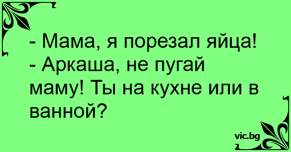 - Аркаша, не пугай маму! Ты на кухне или в ванной?